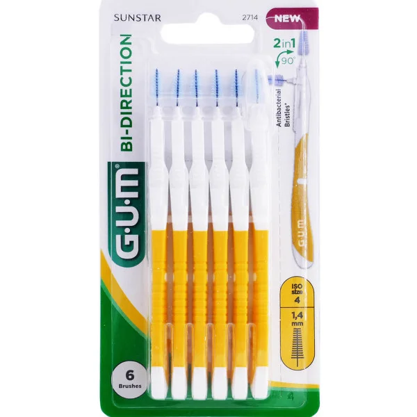 La brossette interdentaire GUM BI-DIRECTION a un design intelligent lui permettant d’être orientable en deux positions (90° ou 180°) en fonction des zones de la bouche à nettoyer. Nous vous recommandons de l’utiliser au moins une fois par jour, de préférence après votre repas du soir.