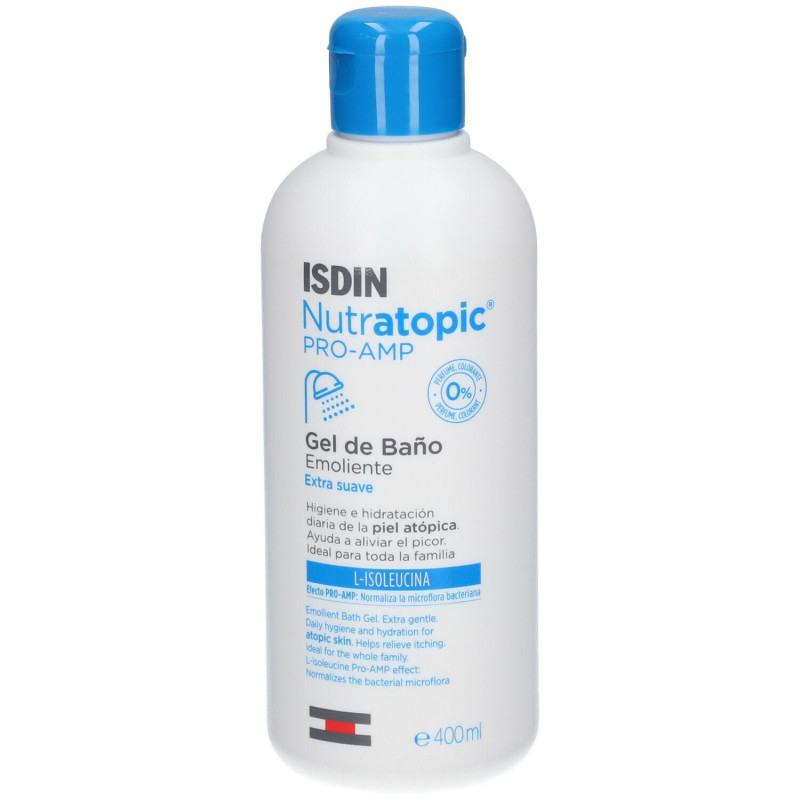 ISDIN Nutratopic Pro-Amp Gel De Bain Émollient 400 ml est spécialement conçu pour les peaux sensibles et atopiques. Sa formule douce et émolliente nettoie en profondeur tout en apportant une hydratation intense, aidant à soulager les sensations de sécheresse et d’irritation.